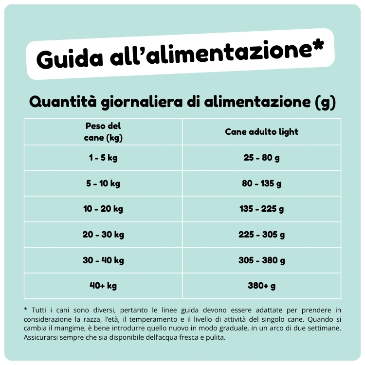 Ricetta consigliata per fornire supporto alla cartilagine delle articolazioni nei cani in sovrappeso. Aggiunta di L-Carnitina per contribuire a mantenere un peso equilibrato ed una massa muscolare magra.
